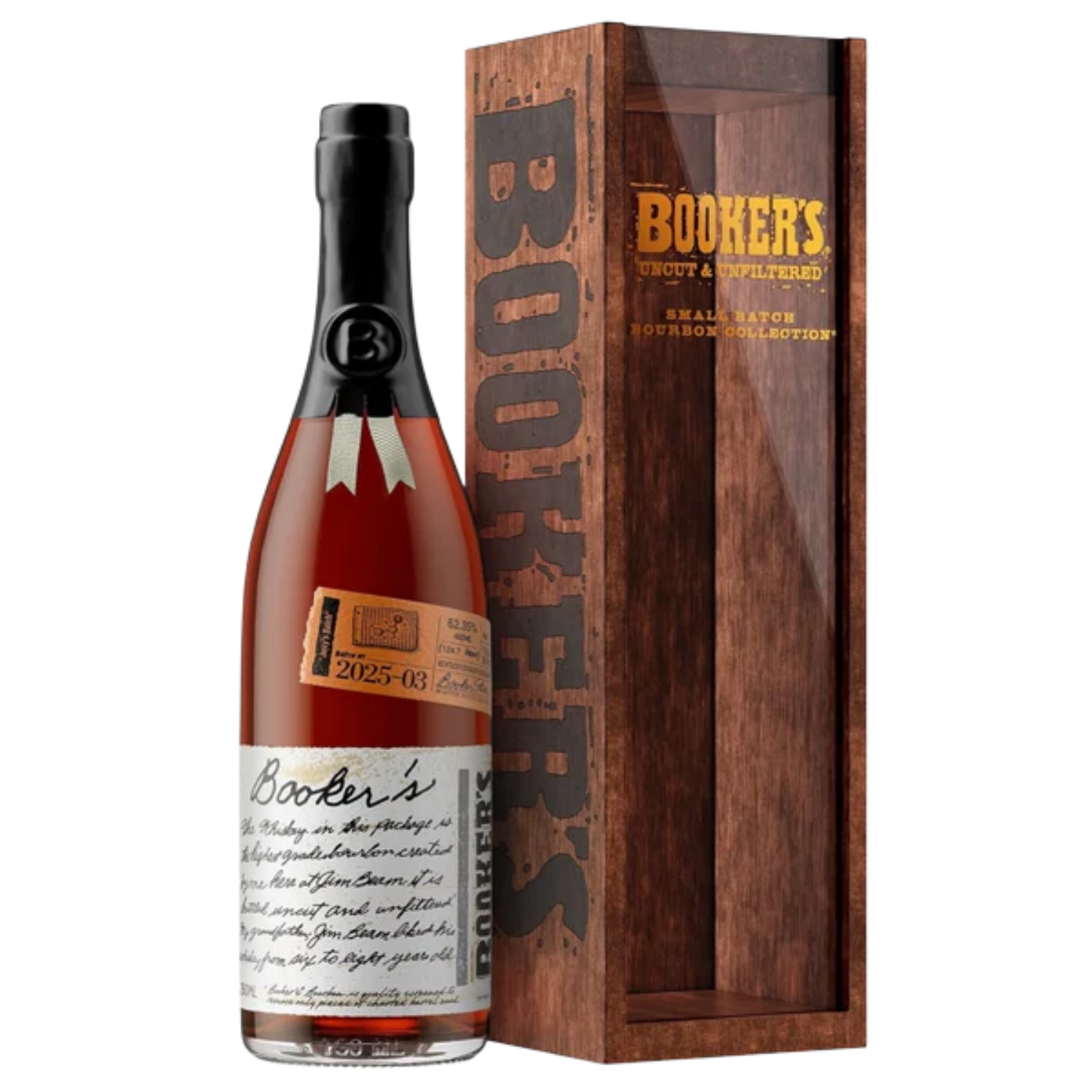 Aging takes place in oak barrels under controlled warehouse conditions, allowing interaction with wood to occur naturally over time. The barrels impart warmth, caramelized sugar, and subtle spice while reinforcing structural density without overpowering the spirit. By leaving the bourbon uncut and unfiltered, Booker’s preserves nuance, mouthfeel, and concentration, creating a product that communicates its origin fully.